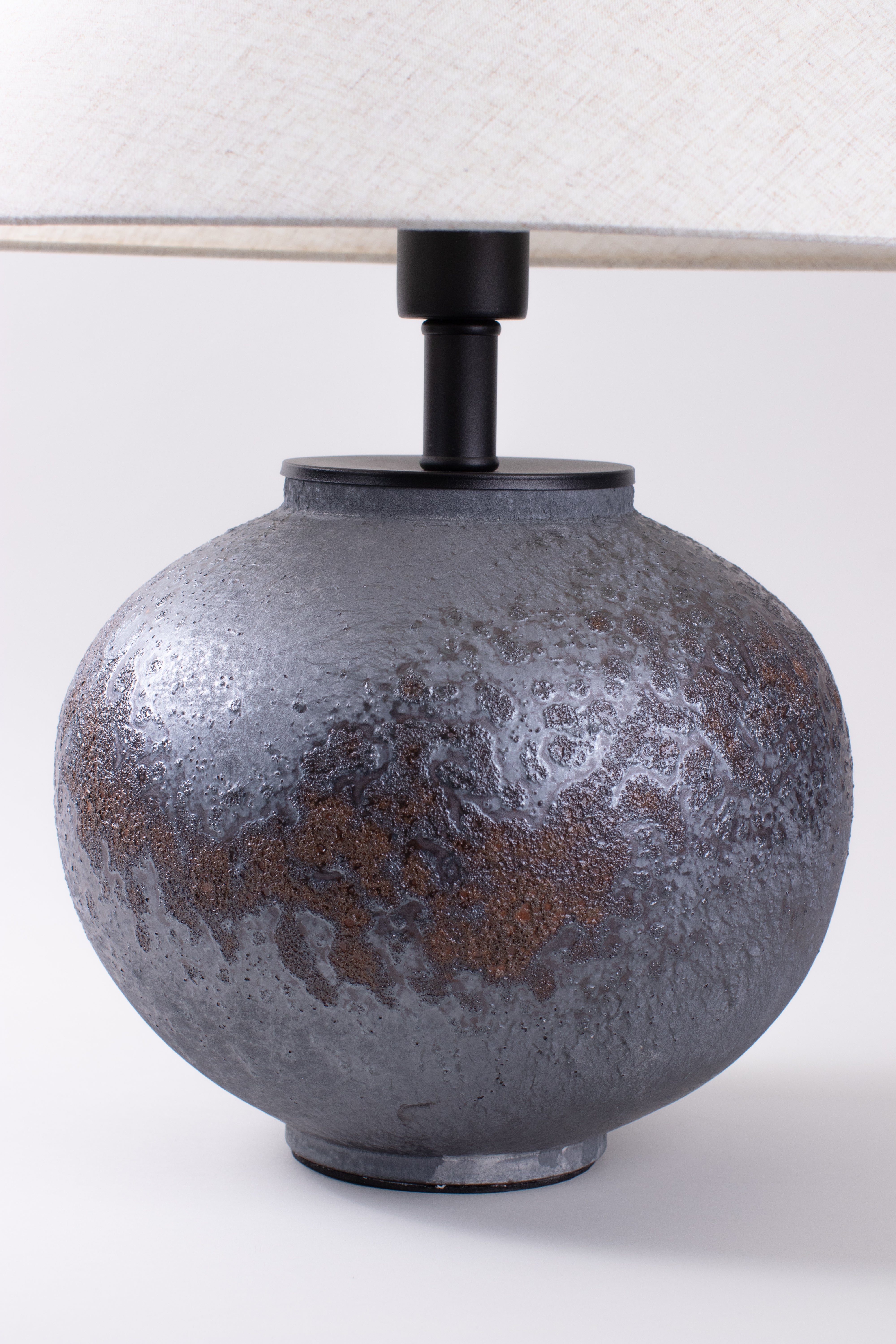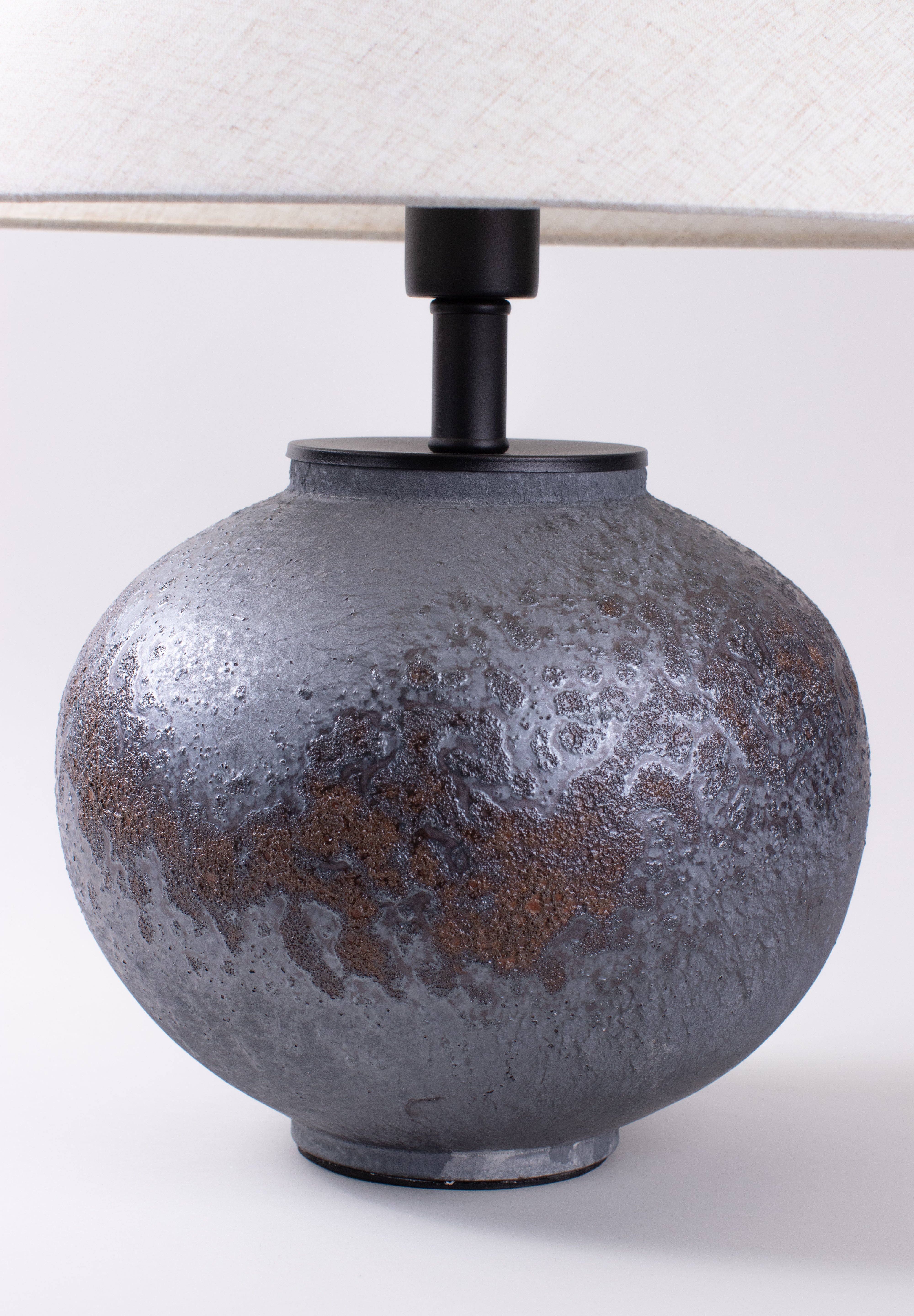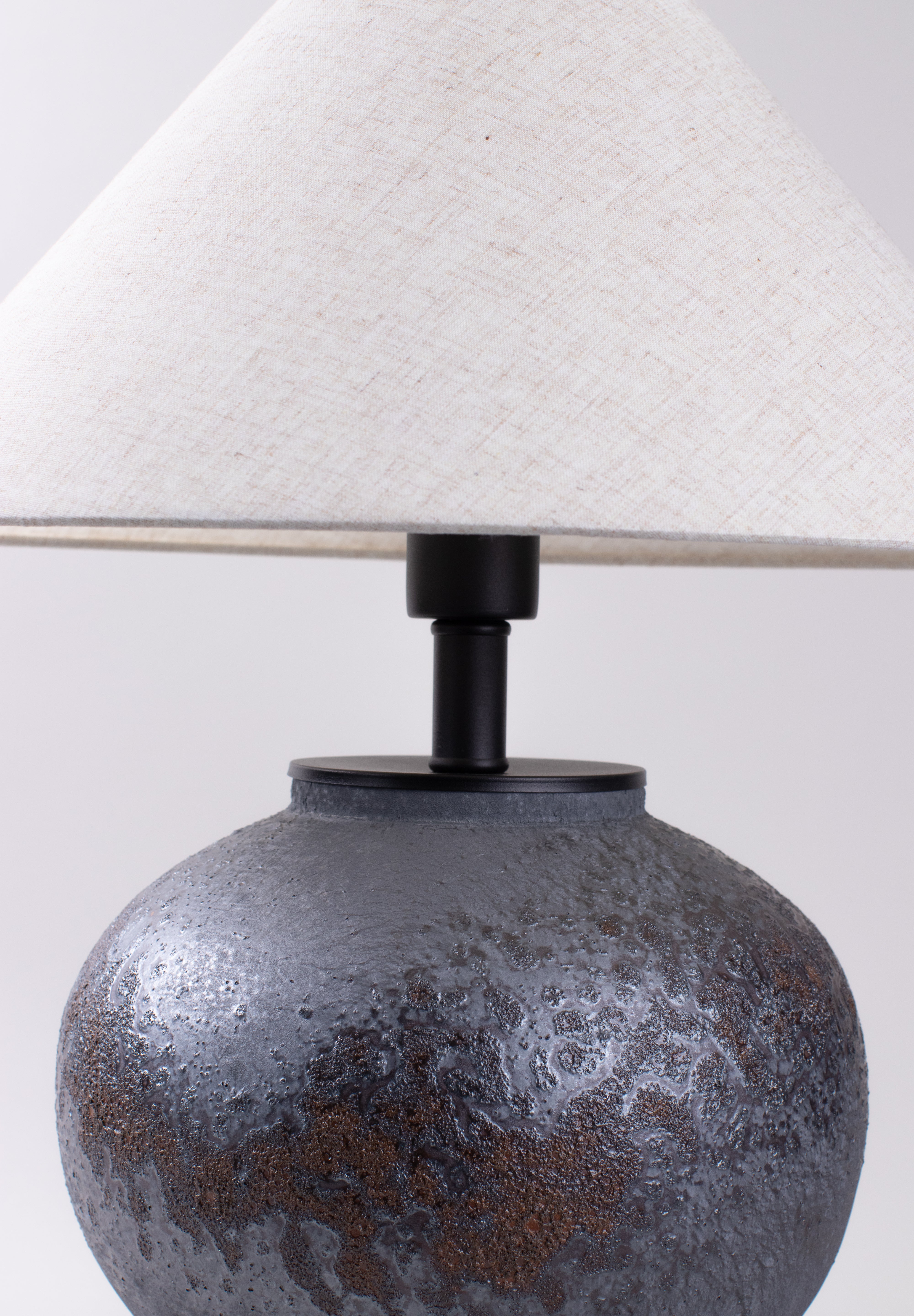 Bold and elemental, The Ember Glaze Table Lamp brings moody warmth and sculptural edge to any room. The volcanic-inspired ceramic base features a textured, semi-matte glaze in deep charcoal and burnished rust reminiscent of molten iron or aged stoneware.